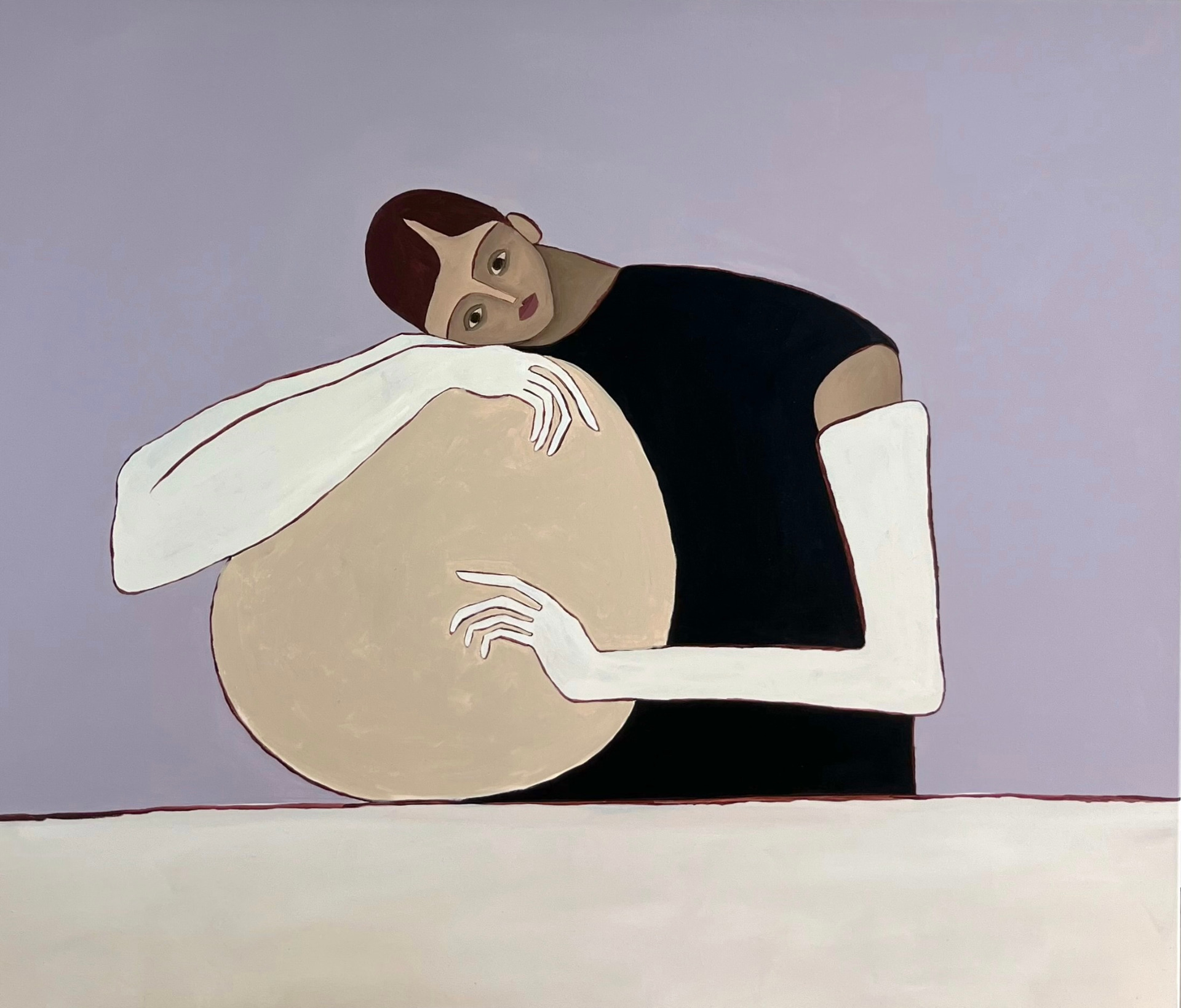 Minimalistická neofigurácia s ikonickým charakterom, v ktorej ženské postavy pôsobia ako nadčasové bytosti medzi realitou a mýtom. Autorka využíva čistú plochu, tlmenú farebnosť a archetypálnu symboliku na vytvorenie vizuálnej rovnováhy medzi minulosťou a súčasnosťou.
